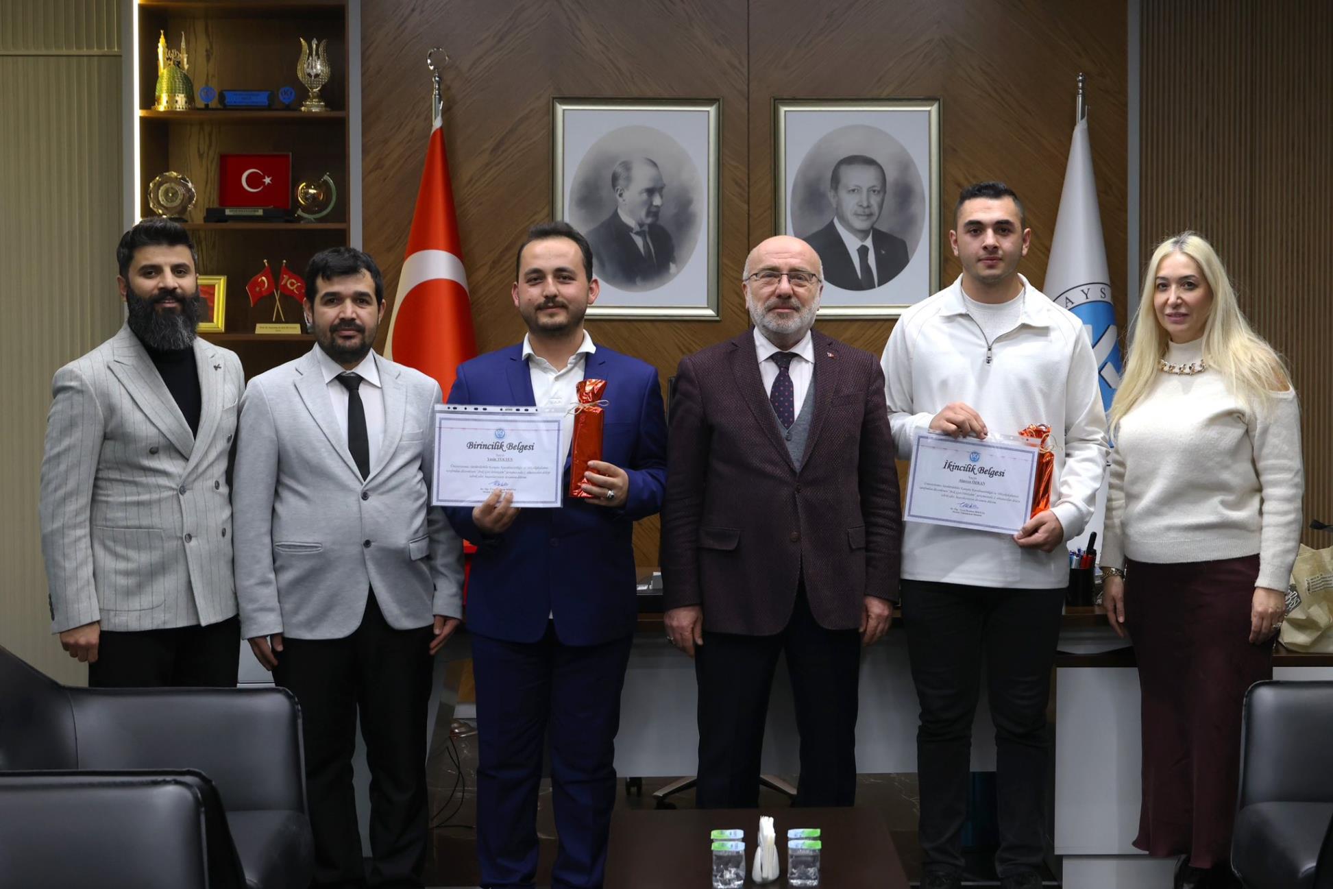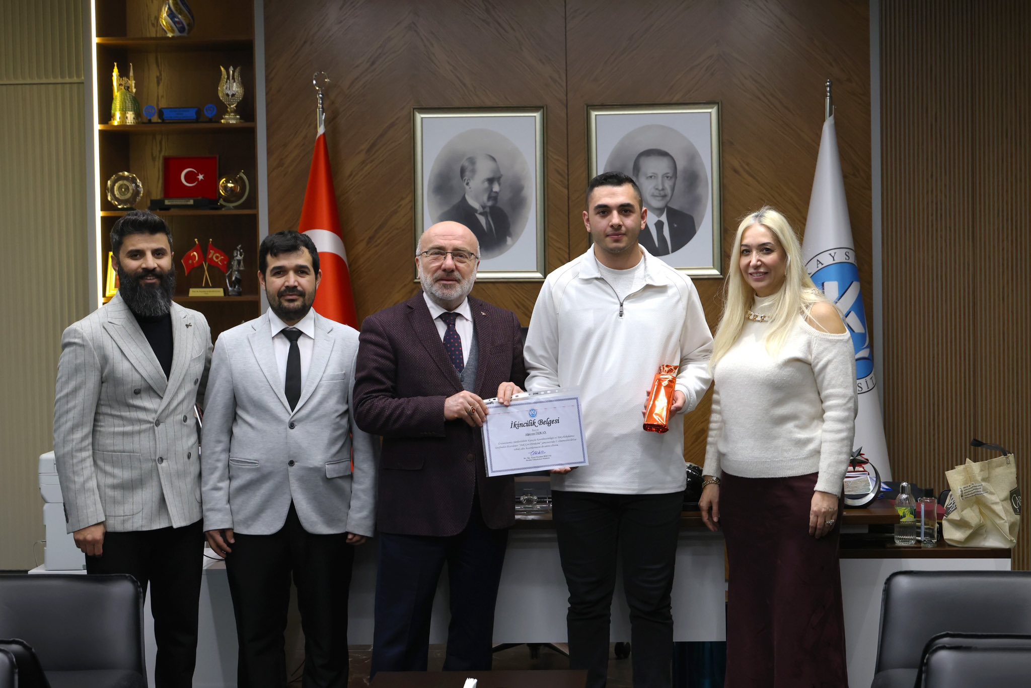 Sürdürülebilir Kampüs Koordinatörlüğümüz ve Tomarza MYO'muz işbirliğinde düzenlenen Atık Geri Dönüşüm Yarışmasında dereceye giren öğrencilerimiz, beraberindeki okul müdürümüz ve sürdürebilir kampüs koordinatörümüzü, Rektörümüz Prof. Dr. Kurtuluş Karamustafa makamında kabul etti.