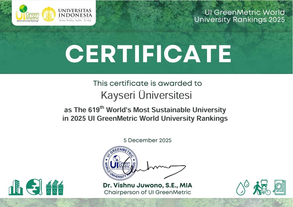 Üniversitemiz, 2025 GreenMetric Sürdürülebilir Yeşil Üniversiteler Endeksi’nde kayda değer bir başarı göstererek 1745 üniversite arasında 619. sıraya yükselmiştir. Üniversitemiz, Sürdürülebilirlik Koordinatörlüğü öncülüğünde yürütülen çalışmalarla sürdürülebilirlik ve çevre duyarlılığı alanında önemli bir ivme kazanmıştır. Daha yeşil, daha yaşanabilir ve sürdürülebilir bir kampüs hedefi doğrultusunda emeği geçen tüm akademik ve idari paydaşlarımıza teşekkür ederiz.